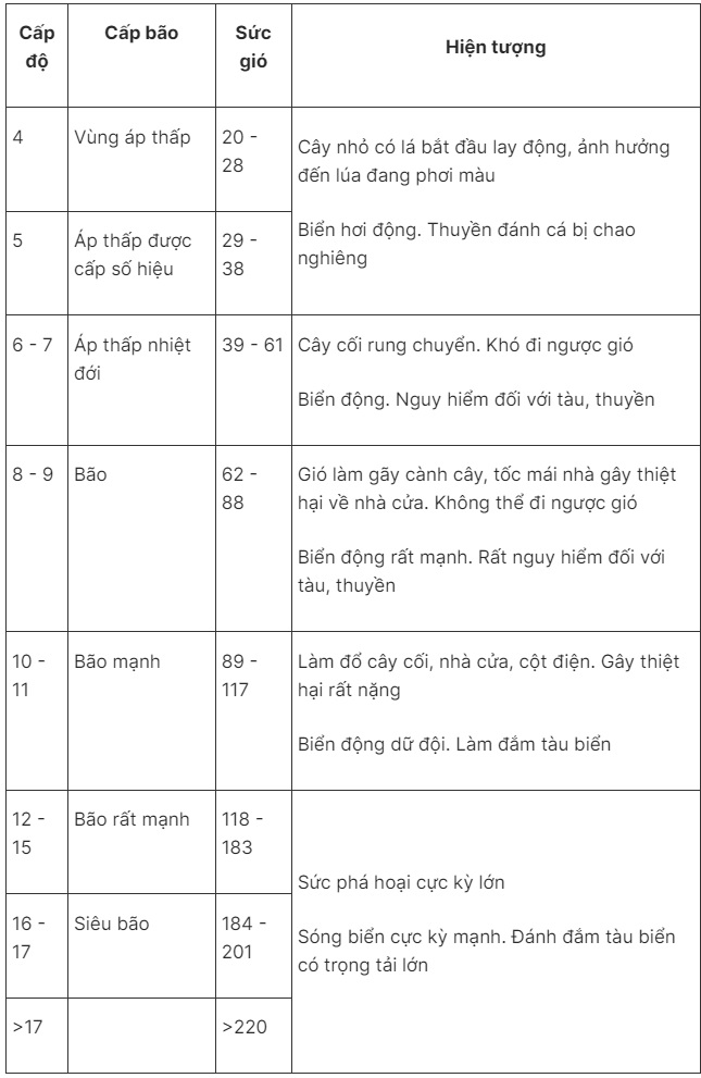 Thang bão của Việt Nam theo Quyết định 18 của Chính phủ