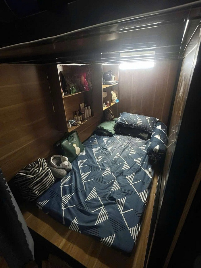 Theo anh Lê Văn Hướng – chủ khu trọ, mỗi “hộp” là một không gian riêng biệt, tách hẳn bằng vách gỗ và rèm kéo, bên trong đầy đủ tiện nghi: từ chăn ga, gối đệm cho đến đèn ngủ, móc treo quần áo. Không gian chung của phòng cũng được trang bị tủ đồ, điều hòa, wifi tốc độ cao, và đặc biệt là nhà vệ sinh riêng cho từng phòng, một điều khá hiếm gặp ở mô hình trọ giá rẻ.