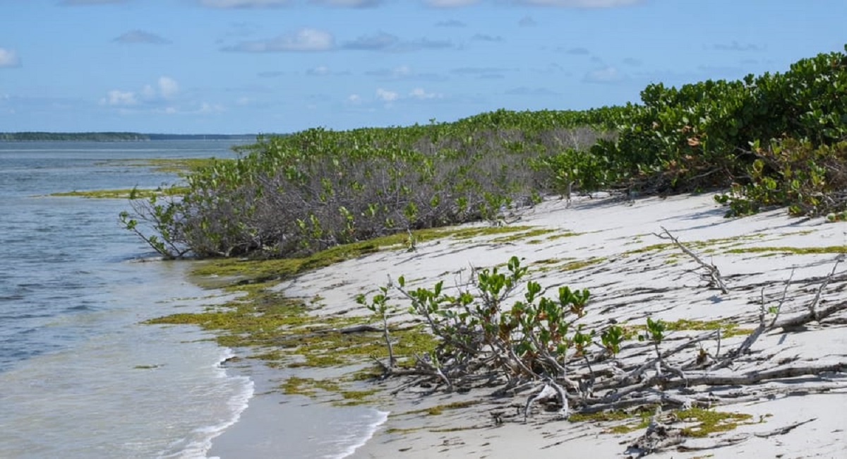 Cận cảnh bờ biển sống cho thấy thảm thực vật tự nhiên, rạn hàu và độ dốc thoai thoải