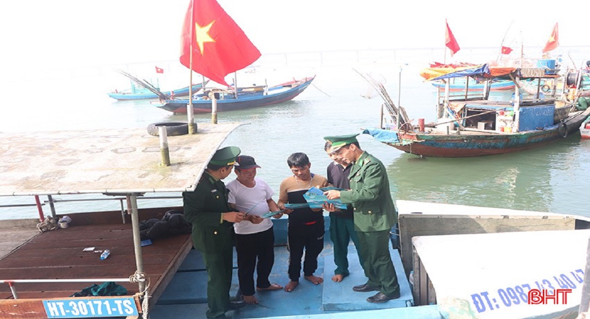 Chiến sỹ Đồn Biên phòng Thiên Cầm trực tiếp tuyên truyền cho ngư dân các thông tin về IUU | Nguồn báo Hà Tĩnh