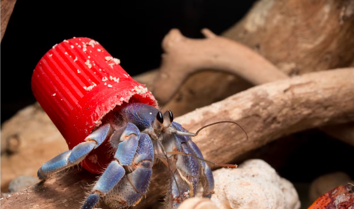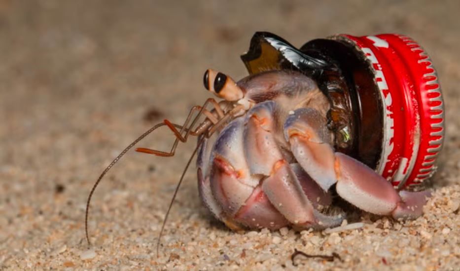 Các nhà nghiên cứu ước tính 10 trong số 16 loài cua ẩn sĩ trên cạn trên thế giới bắt đầu sử dụng nhựa như một loại áo giáp.
