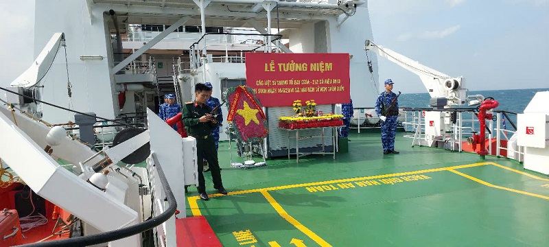 Lúc 10h00 giờ Hà Nội (11h00 giờ Bắc Kinh) ngày 27/11, khi hành trình đi qua khu vực biển cách Đông Nam đảo Bạch Long Vĩ, thành phố Hải Phòng 15 hải lý, Đoàn công tác CSB VN do Đại tá Lương Cao Khải chủ trì đã long trọng tổ chức lễ tưởng niệm 9 cán bộ, nhân viên tổ bay CASA-C212 số hiệu 8983 đã anh dũng hi sinh và bà con ngư dân tử nạn trong quá trình làm ăn, sinh sống trên khu vực này vào trưa ngày 16/6/2016. Trong lúc thực hiện nhiệm vụ tìm kiếm cứu nạn, phi công máy bay SU-30 MK2 của Quân chủng phòng không không quân gặp nạn trong huấn luyện, do thời tiết xấu nên máy bay CASA 212 không may gặp nạn làm toàn bộ tổ bay gồm 9 cán bộ, nhân viên đã anh dũng hi sinh.