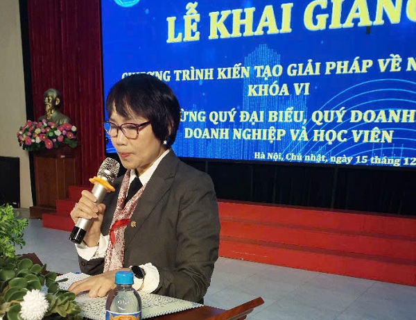 Tổng Giám đốc Công ty CP Nước GMT Nguyễn Thị Hồng Nhung phát biểu tại Lễ khai giảng