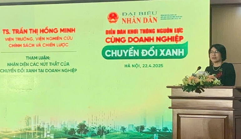 Chia sẻ tại diễn đàn, TS. Trần Thị Hồng Minh, Viện trưởng Viện Nghiên cứu Chính sách và Chiến lược cho biết: “Chuyển đổi xanh không chỉ là chìa khóa để duy trì lợi thế cạnh tranh, mở rộng thị trường và tiếp cận nguồn vốn, mà còn là nền tảng để nâng cao năng lực nội tại và đóng góp tích cực vào quá trình phát triển kinh tế – xã hội của quốc gia”. Tại Việt Nam, một số doanh nghiệp đã tích cực thực hiện chuyển đổi xanh như Vingroup trong phát triển hệ sinh thái xe điện, Vinamilk, TH True Milk, Masan trong công bố lộ trình giảm phát thải, đầu tư và năng lượng tái tạo…