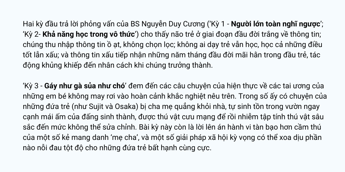 Bài liên quan: Kỳ 1 – Người lớn toàn nghĩ ngược