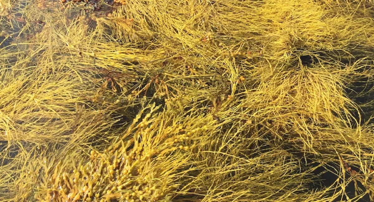 Rockweed, còn được gọi là rong biển thắt nút, nổi trên mặt nước khi thủy triều lên. Ascophyllum nodosum là một trong những loại rong biển mà các nhà nghiên cứu sử dụng trong nghiên cứu của họ | Shaina Luck/CBC