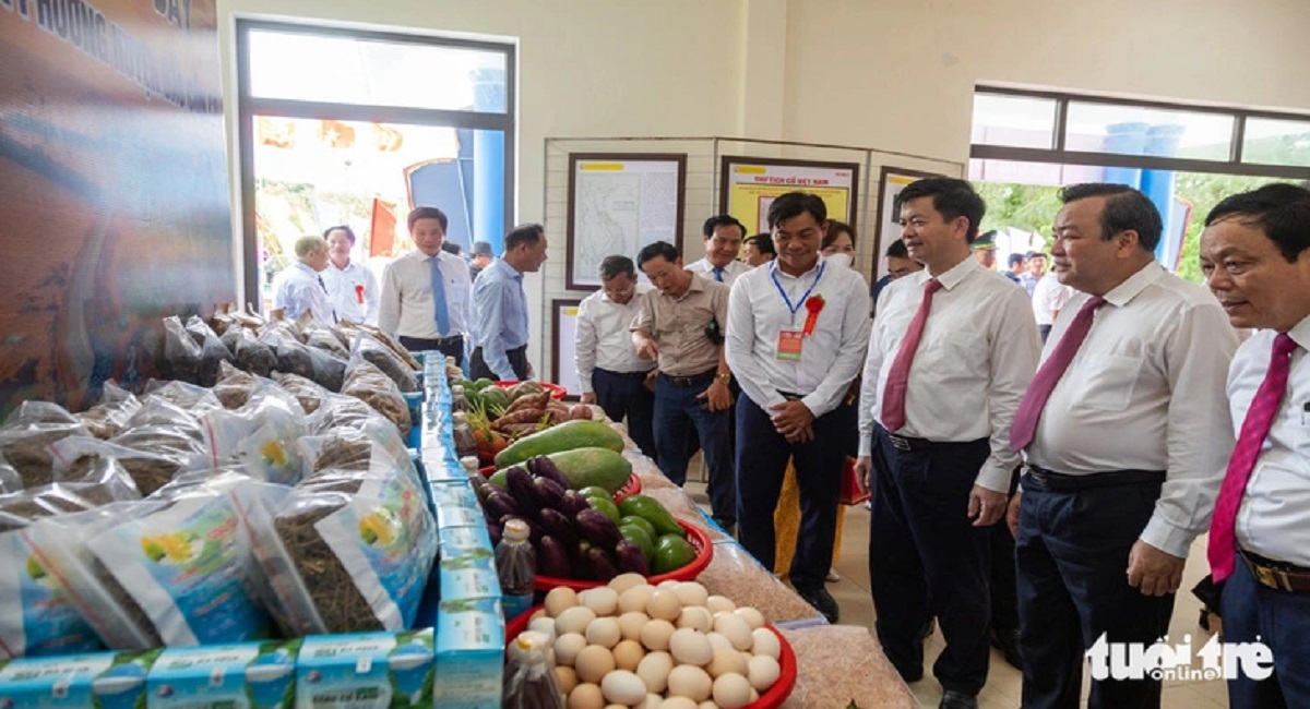 Nguyên bí thư Quảng Trị Lê Quang Tùng (thời điểm tháng 8-2024, thứ 3 từ phải) tham quan các sản phẩm đặc trưng của đảo Cồn Cỏ | HOÀNG TÁO