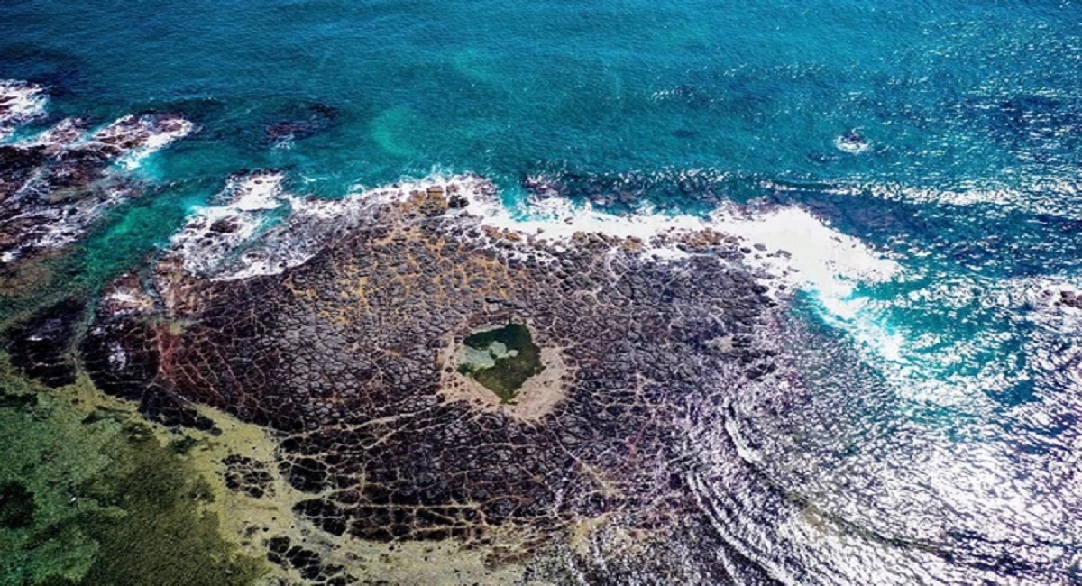 Xung quanh miệng núi lửa còn có các bãi đá bazan, cột đá ba lát, đá nham thạch vô cùng kỳ lạ, mang vẻ đẹp quyến rũ, huyền ảo và kỳ bí. Ngoài ra, trong vùng này còn phát hiện có cả các bãi đá đỏ giống như đá ong. Theo nghiên cứu của các nhà địa chất, miệng núi lửa còn nguyên vẹn này hình thành từ 6 – 11 triệu năm trước.