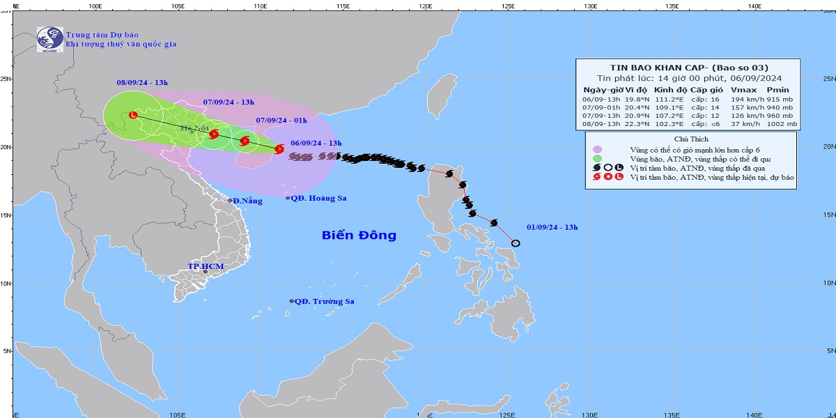 Bản đồ đường đi siêu bão Yagi (siêu bão số 3) lúc 13 giờ chiều nay | NCHMF
