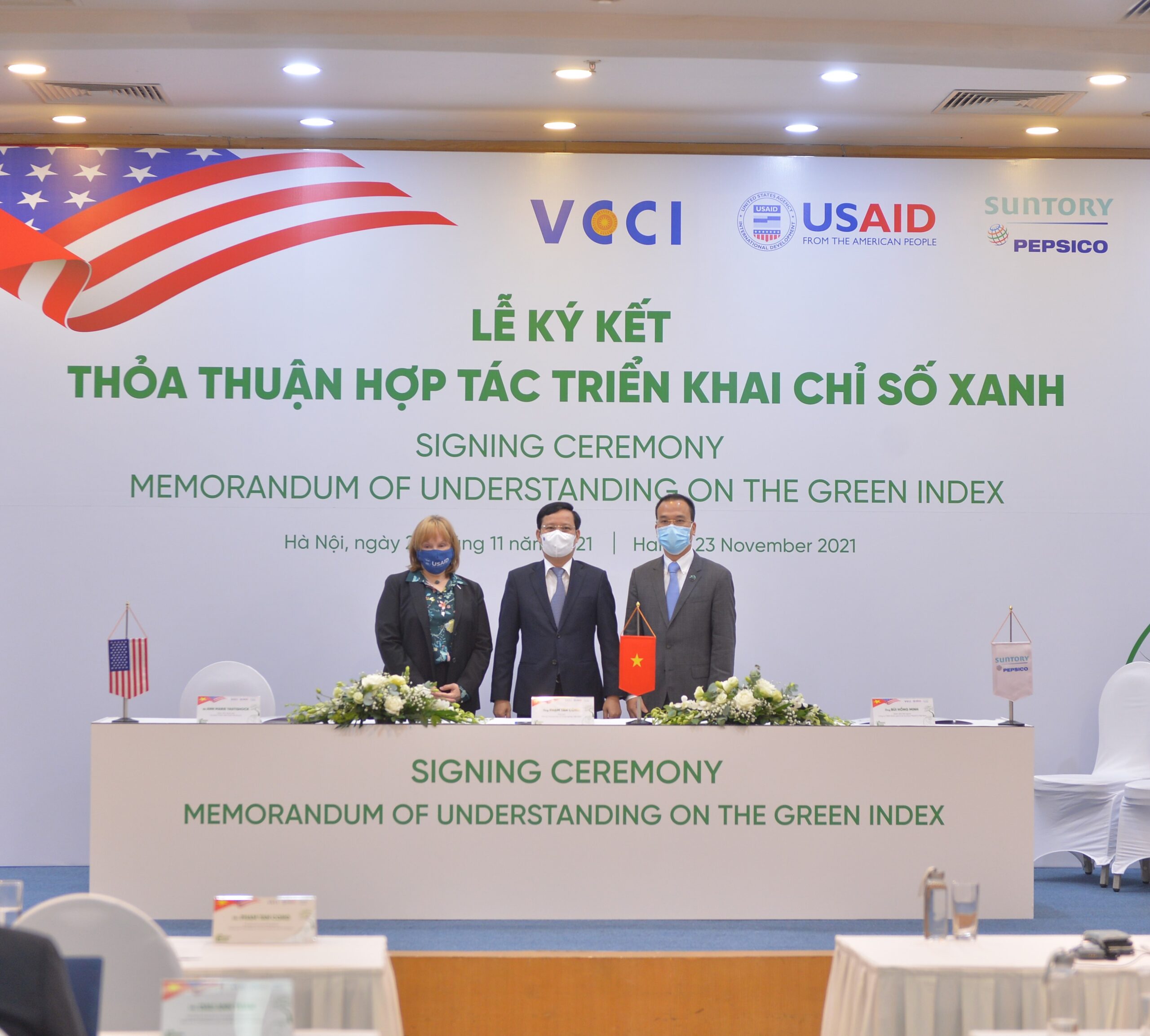 Mới đây, Phòng Thương mại và Công nghiệp Việt Nam (VCCI), Cơ quan Phát triển Quốc tế Mỹ (USAID) và Công ty TNHH Nước giải khát Suntory PepsiCo Việt Nam (Suntory PepsiCo Việt Nam) ký kết thỏa thuận hợp tác triển khai “Chỉ số xanh”. Đây là sáng kiến nhằm thúc đẩy các tỉnh, thành phố quan tâm phát triển kinh tế gắn với bảo vệ môi trường, tạo dựng và cải thiện hoạt động kinh doanh tại địa phương theo hướng bền vững.
