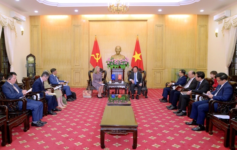 Bày tỏ vui mừng chào đón bà Mariam Sherman đến thăm và làm việc với Học viện Chính trị quốc gia Hồ Chí Minh, đồng chí Nguyễn Xuân Thắng chúc mừng bà Mariam Sherman đảm nhận cương vị mới, chúc bà hoàn thành tốt nhiệm vụ được giao.