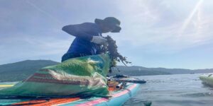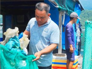 Chủ bè tôm thu gom rác bảo vệ môi trường