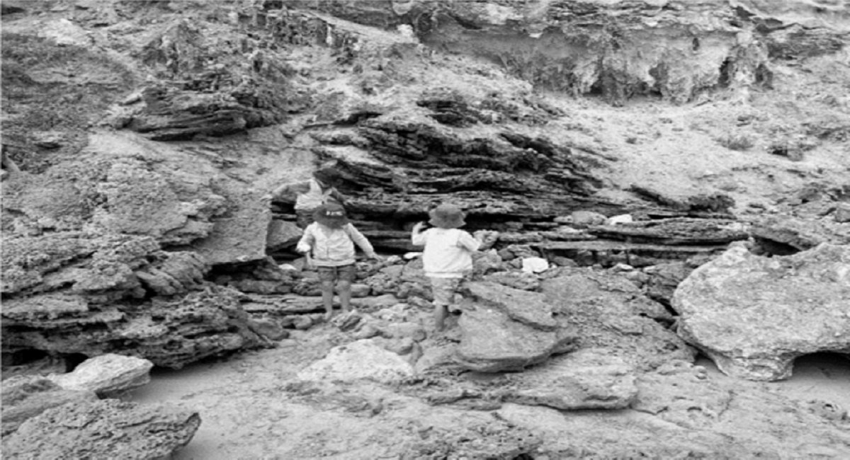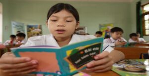 Trẻ em ven biển nhọc nhằn bám chữ