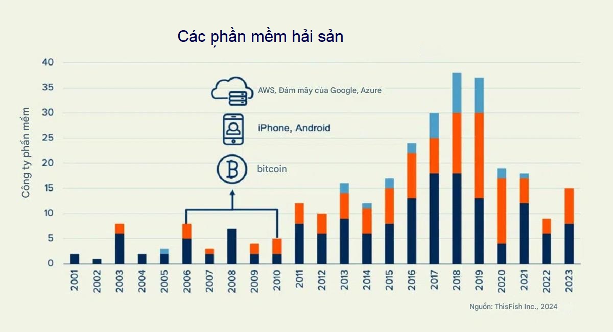 Đã có sự bùng nổ về các công ty khởi nghiệp công nghệ mới phục vụ cho ngành thủy sản, đạt đỉnh vào năm 2018-2019