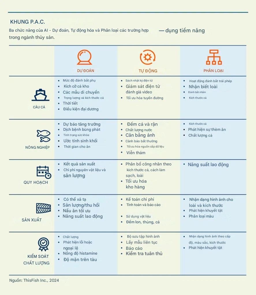 Thực tế, AI đang giúp ngành thủy sản không chỉ ở mức độ dự đoán mà còn ở việc tự động hóa và phân tích dữ liệu một cách nhanh chóng và chính xác.