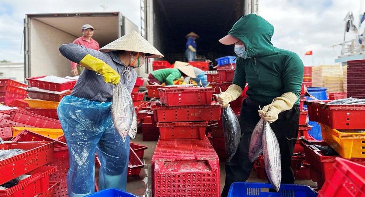 Niềm vui thường lan tỏa, không chỉ chủ tàu, thuyền trưởng, ngư dân vui mà những người phụ nữ bám cảng mưu sinh ngày cuối năm cũng ngập tràn nụ cười. Cá về nhiều, các chị làm việc liên tục, thu nhập cũng vì thế mà tăng cao hơn mọi ngày.